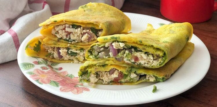 - Moong dal cheela made from soaked mixed whole moong (or other whole daal), Stuffed with homemade paneer Basic spices